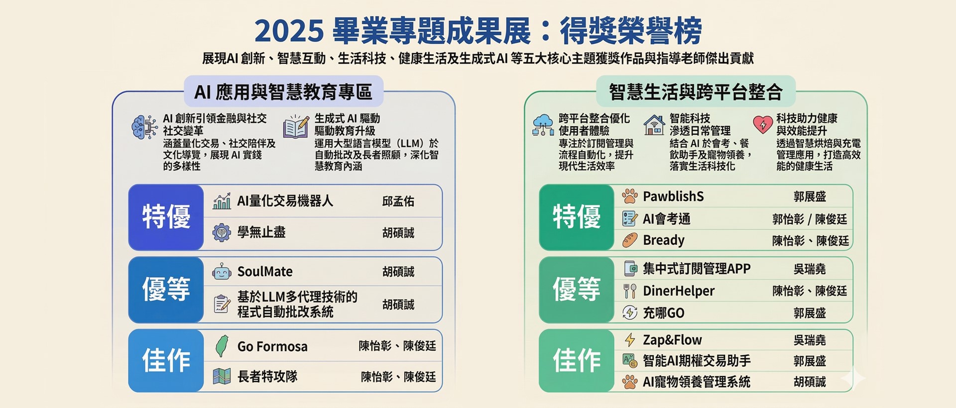 本系學生團隊以作品 「EchoLearn」 參加 2025 第十屆新創盃全球大專校院暨高中職創意創新創業企劃競賽,在眾多參賽隊伍中展現優秀創意與創業企劃能力,成功 入圍決賽。指導老師為 郭展盛 老師。 新創盃競賽著重創意 […]